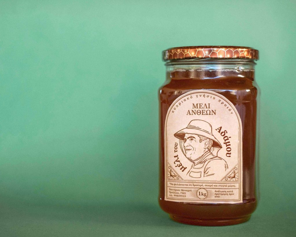 ◤μέλι του Αδάμου Identity for a local honey producer in a village of Cyprus. The logo is displaying the profile of the founder named ‘Adamos’ who first started this activity which became a family tradition passing through the next generations. ━ Related